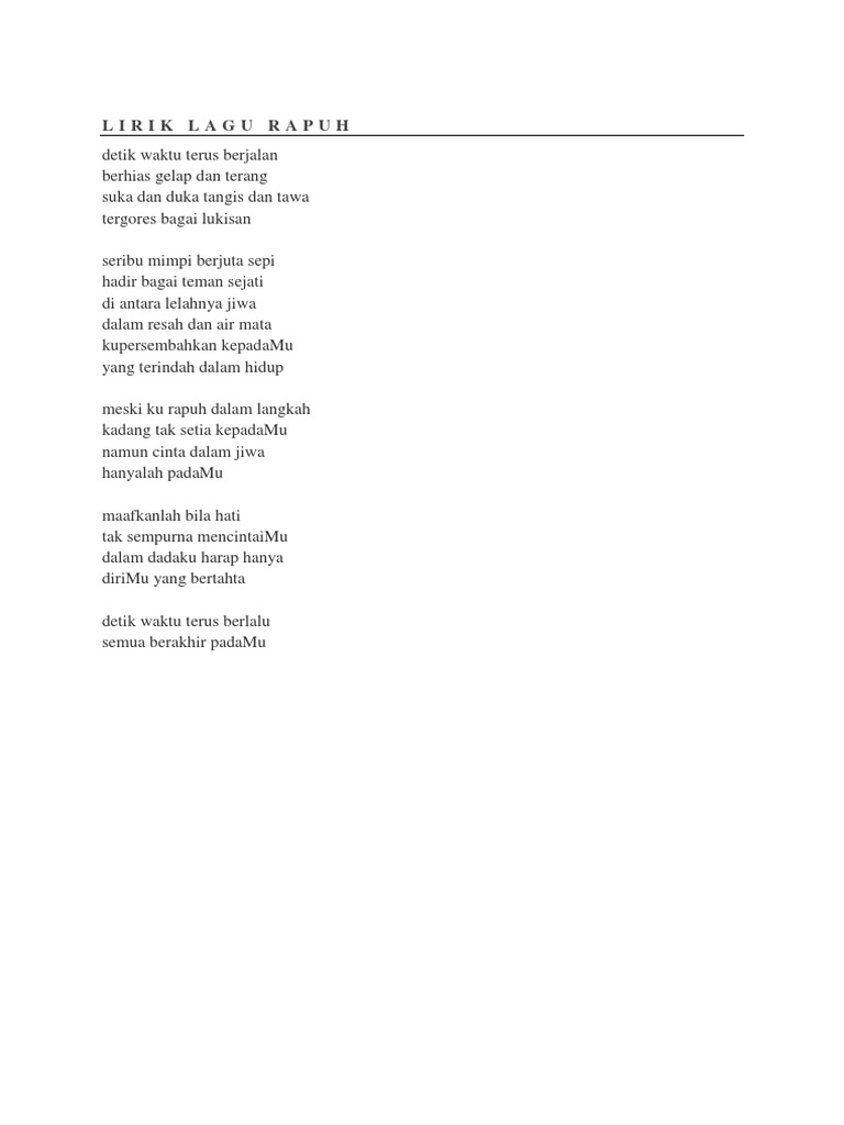 Berikut ini merupakan chord gitar dan lirik lagu rapuh yang dinyanyikan oleh opick.