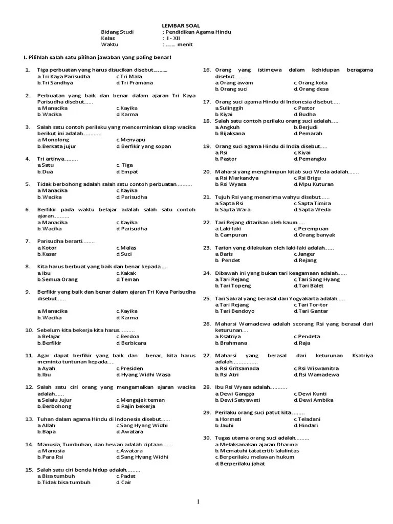 Contoh Soal Agama Hindu Kelas Xi Semester Genap Dan Jawabannya : Soal Soal Ujian Agama Hindu 2015 Pdf : Uda di klik download keluar halaman shrink.